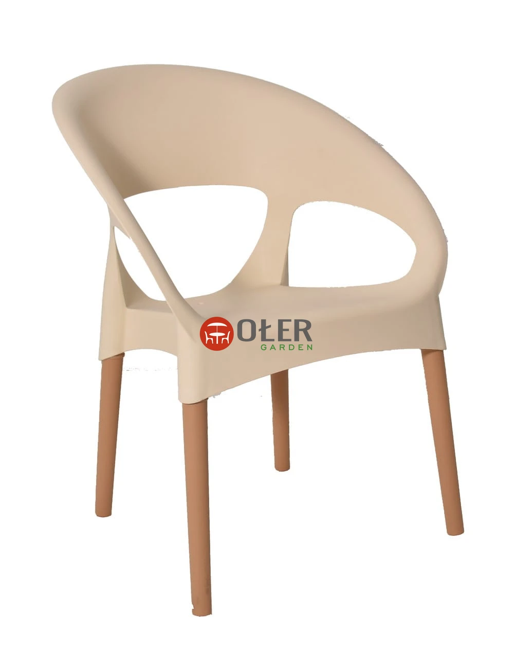 Wygodne i jedyne na rynku krzesło OXFORD na taras, balkon i do ogrodu w kolorze kość słoniowa. Posiada plastikowe siedzisko i nóżki w kolorze buk.