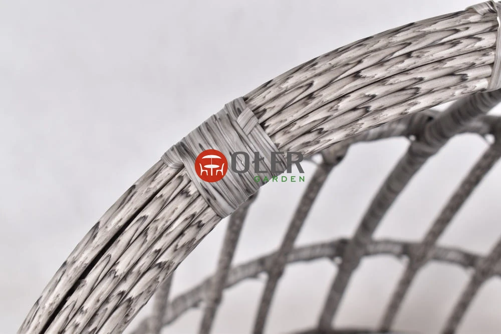 Elegancka plecionka w kolorze szarym wykonana z wysokiej jakości polirattanu dodaje elegancji i lekkości.