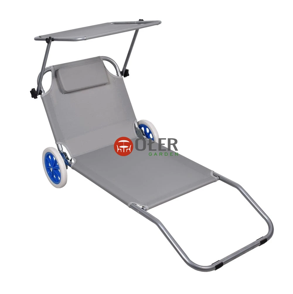 Leżak składany na kółkach - szary