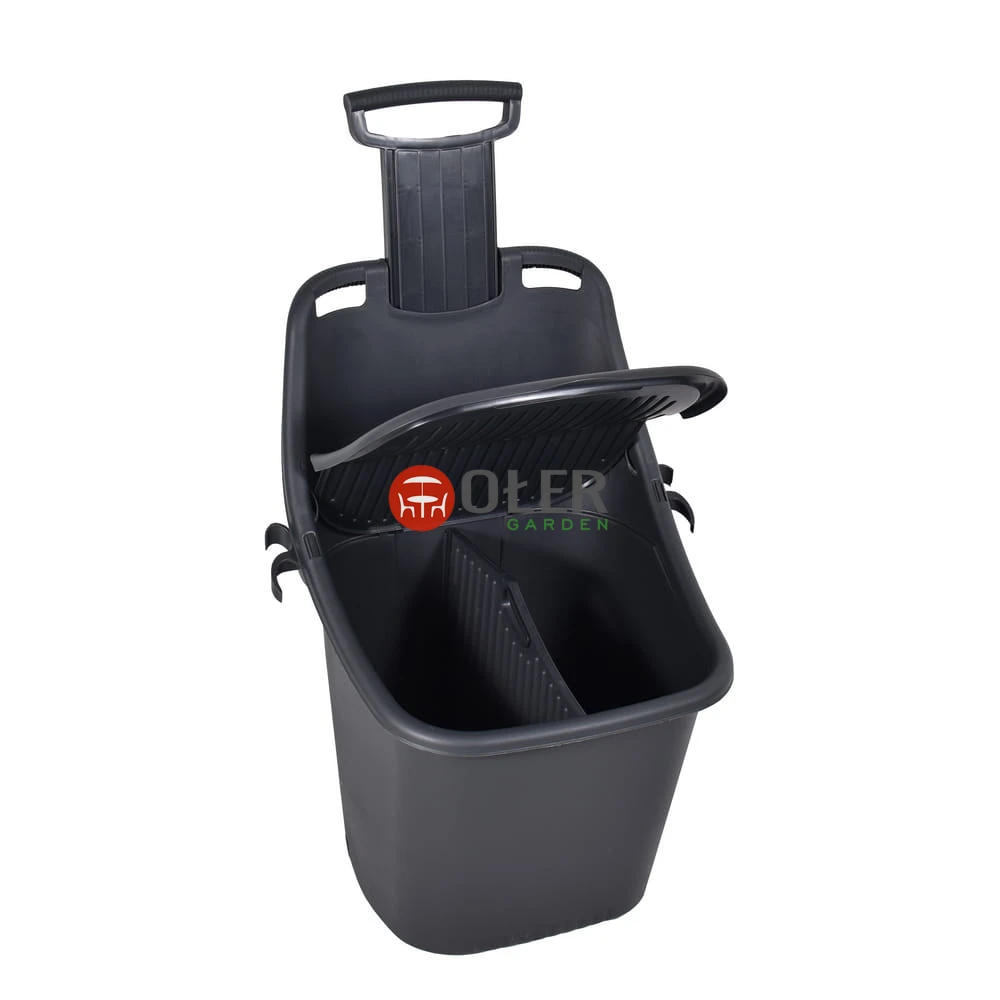 W komplecie znajduje się: taczka o pojemności 70 l w kolorze grafitowym, pokrywa, regulowana rączka oraz przegroda wewnętrzna. Cena w ofercie: 189,90 zł.